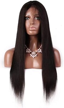 Zqj Noel Cheveux Soyeux Longs Soyeux Noirs 20 Pouces Humains Lace